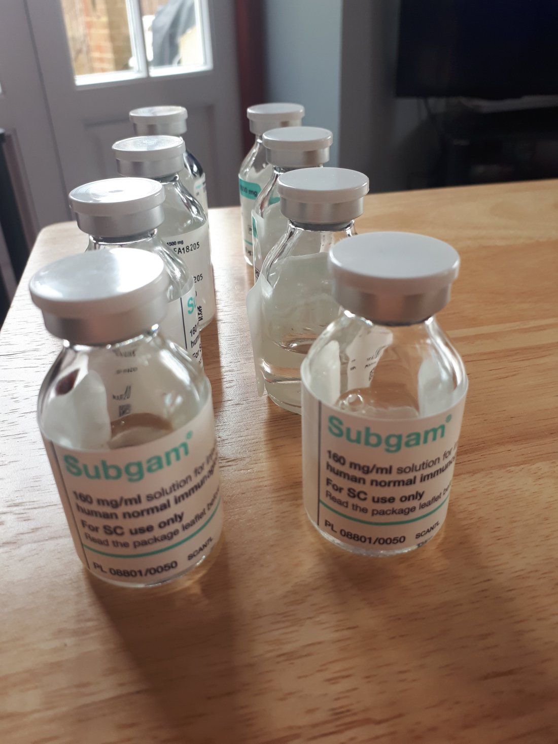 As it happens today was the day I had to do my infusion. This occurs once a week and is an infusion of other people’s antibodies to keep me healthy. For me and so many others this product is our “liquid gold” keeping us well and healthy.